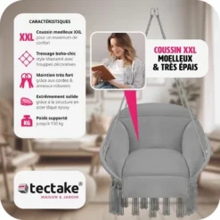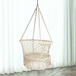OUTSUNNY Chaise Suspendue Banc Suspendu Dim. 130L X 75l X 40H M Macramé Coton Polyester Beige