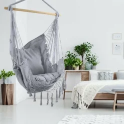 Rebecca Mobili Fauteuil Suspendu Hamac Fauteuil à Bascule Gris Pour Jardin Avec Coussins Suspendus