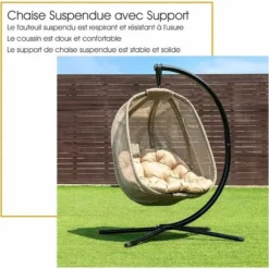 Randaco Hamac Avec Cadre Hamac à Tige Ultra-léger Jusqu’à 200 Kg Chaise Suspendue D’extérieur