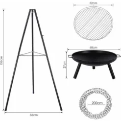 Brasero D’Extérieur – Panier à Feu – Charbon De Bois – 56 X 56 X 58 Cm – Acier – Noir – MaxxGarden