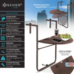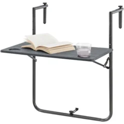 OUTSUNNY Table Suspendue Pour Balcon Dim. 60L X 45l Cm Hauteur Réglable 3 Niveaux Métal époxy Noir