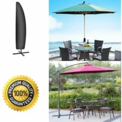 Couverture étanche En Oxford Noir A Pour Parasol De Jardin De 265cm, Avec Housse De Protection