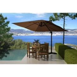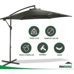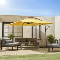 Parasol Déporté Ø350cm – Hardelot – Coloris Moutarde. Structure Anthracite. Manivelle Anti-retour.