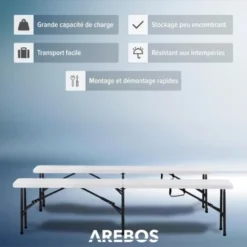 AREBOS 2X Bancs Pliables Pliant Banc De Camping Picnic Bancs De Brasserie