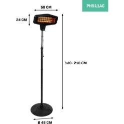 Chauffage Électrique Suspendu Pour Extérieur 1500 W En Aluminium Et Synthétique Noir Merapi