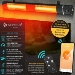 Parasol Chauffant électrique Max. 2000W Chauffage De Terrasse 3 Niveaux IPX4 Extérieur Intérieur