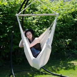 L’installation est simple et rapide. Pour accrocher votre hamac, il vous suffit d’une branche d’arbre, un crochet vissée au plafond, un support pour fauteuils-suspendus (vendus séparément, non compris dans la livraison).