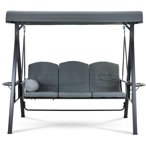 Grâce à sa construction robuste, cette balancelle est parfaite pour n’importe quel jardin, et grâce à son revêtement en poudre gris luxueux, elle peut être laissée dehors toute l’année ! Le banc est doté de part et d’autre d’une plate-forme pliante très pratique où vous pouvez poser vos boissons rafraîchissantes ou votre nourriture. Avec ses coussins larges et confortables + le coussin pour le cou et bien sûr le parasol rotatif, vous pouvez profiter de la chaleur de l’été pendant des heures sans vous brûler.
