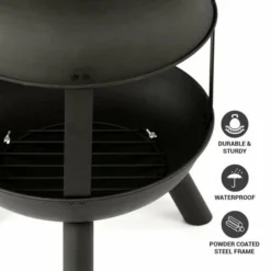 Profitez d’un délicieux feu crépitant dans votre propre jardin avec ce brasero ! Le feu de jardin, d’un diamètre de 45 cm, est fabriqué en métal thermolaqué et résiste donc aux intempéries. Avec sa base robuste, il se tient solidement dans votre jardin. La cheminée assure une évacuation parfaite des fumées et est équipée d’un chapeau de pluie pour empêcher la pluie de pénétrer. Le plateau collecteur amovible permet d’éliminer facilement les cendres et les résidus de bois. Le brasero ne sert pas seulement à réchauffer ou à créer une atmosphère. Vous pouvez également l’utiliser pour réchauffer des marshmallows ou d’autres délices.
