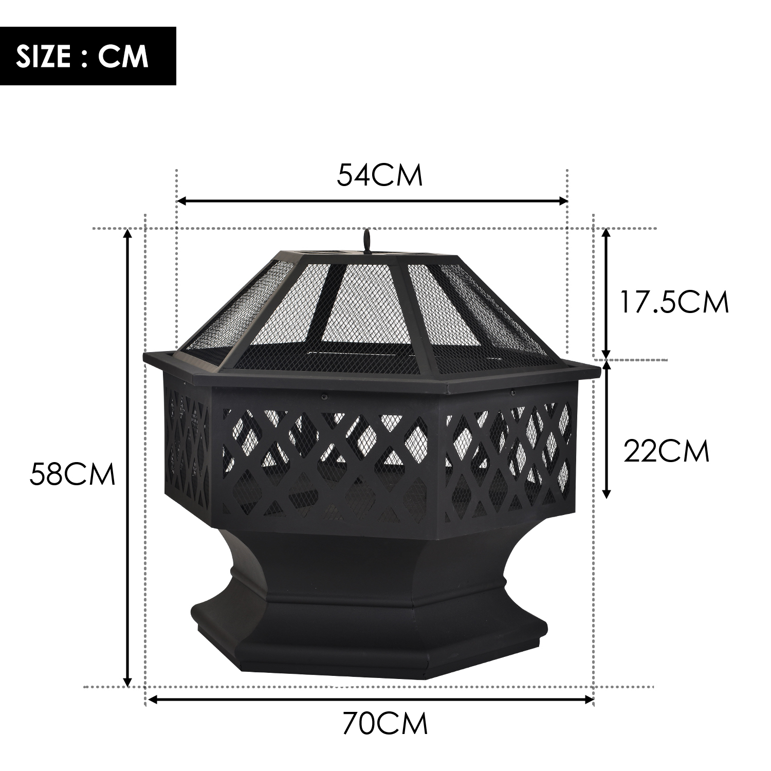 *Taille – L70 x P70 x H58 cm. Pesant seulement 9,9 kg, le foyer est facile à manœuvrer dans votre jardin. Très facile à assembler.