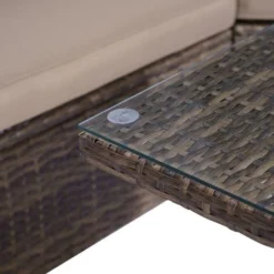 - Choix de 3 couleurs : rotin noir combi avec coussins gris ; rotin marron combi avec coussins cappucino ; rotin gris combi avec coussins anthracite.