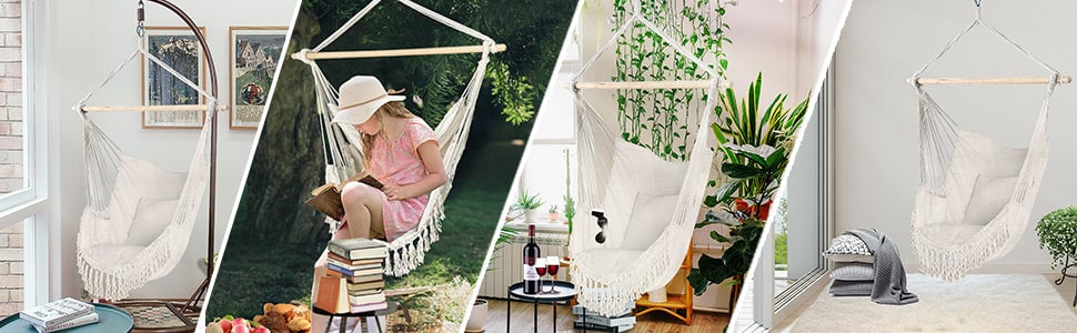 - Fabriqué en coton polyester de haute qualité, notre fauteuil suspendu sûr et confortable.