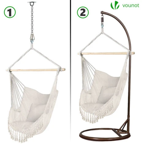 - Avec 2 grands coussins épais, notre chaise suspendue vous offre un confort supplémentaire et un sentiment de détente.