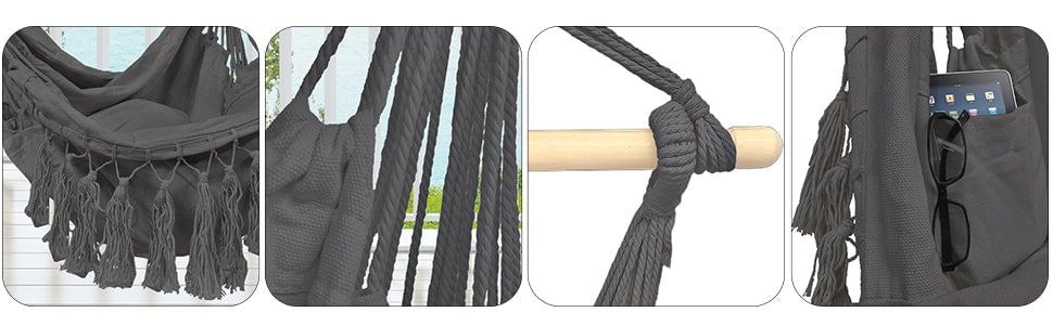 - Fabriqué en coton polyester de haute qualité, notre fauteuil suspendu sûr et confortable.