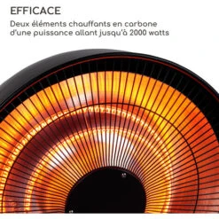 Efficace : deux éléments chauffants en carbone d’une puissance allant jusqu’à 2000 watts