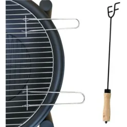 - Crochet à feu avec poignée en bois véritable pour éviter la rouille et les étincelles