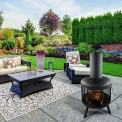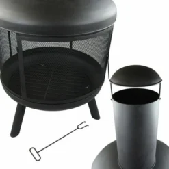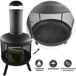 Le feu de jardin, d’un diamètre de 60 cm, est fabriqué en métal thermolaqué et résiste donc aux intempéries. Avec sa base solide, il est robuste dans votre jardin. Autour de l’extérieur de la cheminée de jardin, un filet supplémentaire est monté pour contrôler le feu. Cela vous permet de regarder le feu de tous les côtés. Ce brasero est plus beau lorsqu’il est placé au milieu d’un cercle. La cheminée assure une évacuation parfaite des fumées et est équipée d’un chapeau de pluie pour empêcher la pluie de pénétrer. Le cendrier amovible permet d’éliminer facilement les cendres et les résidus de bois.