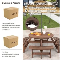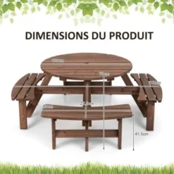 - Fournit 4 bancs et une grande table pour accueillir 8 personnes pour manger et discuter