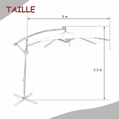 - 1 x Parasol déporté 3m à énergie solaire avec base en croix
