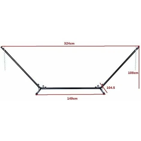 - 【Idéal pour les hamacs polyvalents】Dimensions totales : 325 cm x 100 cm x 106 cm. Ce support de hamac vous offre un confort supplémentaire pendant vos moments de loisirs. Il est compatible avec différents styles de hamacs tels que le hamac brésilien, le hamac maya, le hamac avec barres jusqu’à 320 cm de long (le hamac n’est pas inclus).