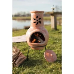 - Y compris un support en acier enduit de poudre noire et un couvercle de cheminée en argile