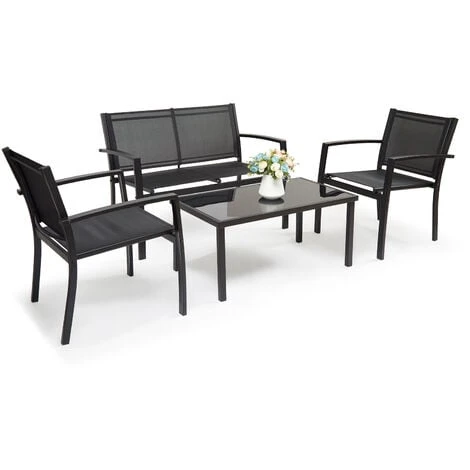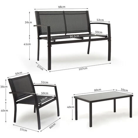 Nouveaux matériaux – meubles 4 pièces en PE de haute qualité, une table basse en verre trempé. Les chaises sont en tissu textilène qui est résistant à la chaleur, à l’enrouillement, à la corrosion et au ultraviolet. Matériaux naturels, sans odeur et non toxique, inoffensif pour la santé.
