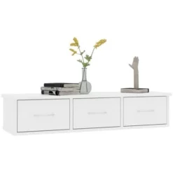 Voulez-vous ajouter du style aux murs vides plus de rangement à la maison ? Cette étagère murale avec tiroirs a tout pour plaire ! Cette étagère flottante à 3 tiroirs offrira une solution d’affichage et de stockage idéale pour n’importe quelle maison. En tant que meuble polyvalent, vous pouvez le placer dans le couloir pour décorer les clés, dans le salon pour afficher des photos et des objets décoratifs; et aussi sous un miroir mural pour créer une zone de maquillage. De plus, fabriquée en panneau de qualité, cette étagère flottante est construite pour durer. L’étagère à tiroirs est facile à nettoyer avec un chiffon humide.