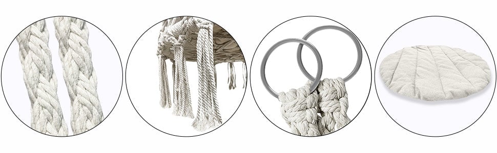 - Les cordes robustes torsadées en coton rend ce fauteuil suspendu plus sûr et stable.
