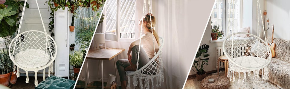 - Fabriqué en coton polyester de haute qualité, notre fauteuil suspendu sûr et confortable.