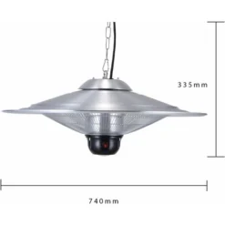 * PERFORMANT : En plus d’être un modèle suspendu, ce chauffage électrique à la fois d’intérieur et d’extérieur fourni avec sa chaîne est le chauffage d’extérieur le plus petit et le plus léger du marché. Par conséquent, ce chauffage élégant et discret est facilement maniable (Assemblage facile en 10 minutes) et peut être positionné sur n’importe quel type de plafond, les armatures de tente ou les terrasses.