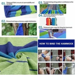Le Hamac de camping vous donne la stabilité et la durabilité avec son modèle de chaîne de verrouillage des deux extrémités et des boucles de nœud chinois pour augmenter la capacité de charge à 200kg. Avec la capacité de poids élevée, la taille du lit de 280cm*150cm permet de contenir deux personnes. il inclut également un sac de rangement de transport pour assurer un transport facile.