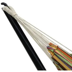 Hamac Avec Support Métal Et Toile Rayée Rouge Et Jaune