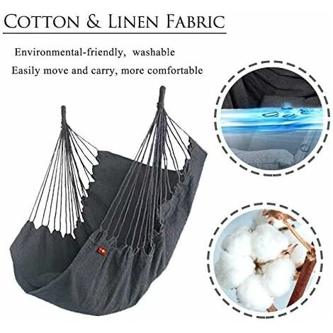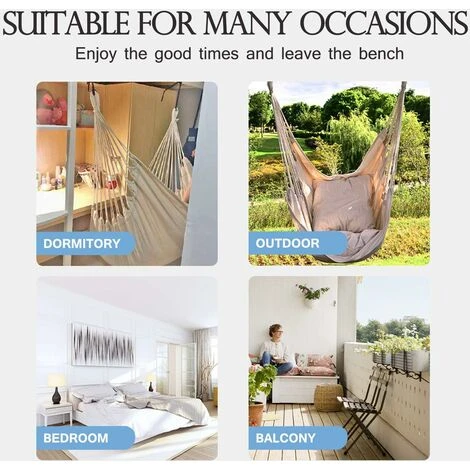 [Fashion Design] Cette chaise hamac est fabriquée à 100 % en coton fait à la main. La conception classique en maille tissée est confortable et offre un soutien solide. La structure de haute qualité garantit que cette chaise hamac ne se déchirera pas ou ne se cassera pas en raison d’une utilisation fréquente. La taille de la balançoire du grand siège offre suffisamment d’espace pour se détendre et s’étirer. Cette chaise hamac vous donnera l’impression d’être assise sur un nuage. [Fonction puissante] Elle peut être facilement déplacée à tout moment et n’importe où, ce qui la rend pratique à transporter. En plus d’être sur un balcon, une terrasse, un jardin, en lisant un livre, un magazine ou une tablette, vous pouvez également regarder la pluie, le cricket, les oiseaux ou profiter d’une nuit tranquille dans le confortable « noix de coco ».Le cadeau parfait pour la famille : de petites choses peuvent faire une grande différence dans votre vie ou celle de ceux que vous aimez. Cette chaise berçante bohème ne manquera pas de faire une énorme différence. Offrez-le-lui pour les anniversaires, les anniversaires, les vacances ou les fêtes de pendaison de crémaillère, peut-être juste pour vous-même ! C’est le meilleur cadeau pour un homme ou une femme.