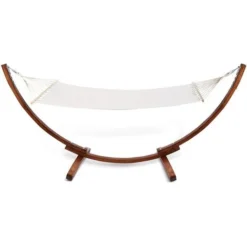 Accordez-vous des moments de pure détente dans votre jardin ou autour d’une piscine pour les beaux jours grâce au hamac XL avec support bois et toile écrue.Véritable cocon dans lequel se bercer, réservez-vous des instants de bien-être en toute tranquillité tout au long de l’été !Son design moderne grâce à ses courbes et naturel s’adaptera parfaitement à votre extérieur.Sa structure en bois vernis de mélèze vous apporte une réelle stabilité, fiabilité et robustesse que vous apprécierez.Pratique, sa structure permet de suspendre surement la toile en tissu.Fabriquée à 55% de coton et 45% de polyester 320g/m2, sa toile vous garantit une résistance à l’usure ! Douce et agréable au toucher, la toile du hamac vous apporte un confort maximal à deux ou tout seul avec une surface de couchage de 200 cm (Longueur) x 110 cm (largeur).Facile à monter.Dimensions du hamac XL avec toile écrue- Dimensions totales : Longueur 310 CM x largeur 120 CM x Hauteur 120 CM- Surface de couchage : Longueur 200 x largeur 100 CM- Epaisseur du support bois : 8 x 5 CM- Composition de la toile : 55 % coton, 45 % polyester 320 gr/m²- Dimensions de la toile : L. 200 x l. 110 CM- Charge maximale supportée : 150 kg- Poids : 24 kgDécouvrez également toute notre gamme de hamacs pour profiter de votre été !