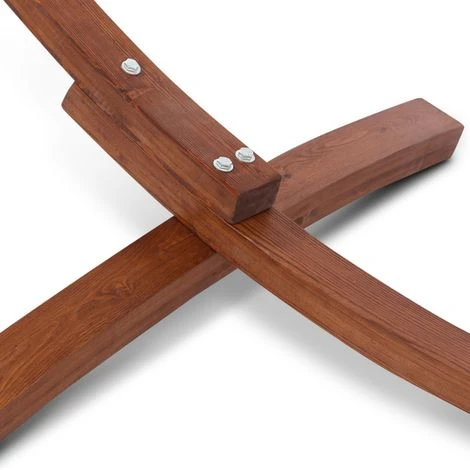 Accordez-vous des moments sous le signe de la détente grâce à ce hamac en bois. Posé sur votre terrasse, au bord de la piscine ou au milieu de votre jardin, profitez d’un doux moment de quiétude. Idéal dès le début des beaux jours, votre hamac à petit prix est la solution parfaite pour une sieste à l’extérieur, en solo ou à deux.La courbe parfaite de ce meuble d’extérieur et sa belle couleur boisée en font le compagnon idéal de votre mobilier de jardin. Facile à monter, sa structure en bois est l’assurance d’un hamac robuste et stable, permettant une charge maximale de 150 kilos.Le bois foncé est sublimé et contrasté par la toile en tissu noire, mélange de coton et de polyester. Cet alliage permet à la toile d’être résistante à l’usure, en plus d’être agréable au toucher. La couleur unie noire de la toile du hamac s’accorde à tous les extérieurs sans jurer avec votre mobilier de jardin. Offrez-vous un meuble d’extérieur à petit prix grâce à ce hamac fiable et esthétique.Après une baignade dans la piscine familiale ou pour une sieste digestive, accordez-vous le luxe d’un repos bien mérité dans un hamac de qualité.Dimensions du hamac en bois XL avec support bois toile noire- Dimensions totales : Longueur 310 CM x largeur 120 CM x Hauteur 120 CM- Surface de couchage : Longueur 200 x largeur 110 CM- Epaisseur du support bois : 8 x 5 CM- Composition de la toile : 55 % coton, 45 % polyester 320 gr/m²- Dimensions de la toile : L. 200 x l. 110 CM- Charge maximale supportée : 150 kg- Poids : 24 kgRetrouvez nos autres coloris disponibles sur ce modèle : – Hamac XL avec support bois et toile écrue- Hamac XL avec support bois et toile gris anthracite- Hamac XL avec support bois et toile rayée noire, blanche et chocolatDécouvrez également toute notre gamme de hamacs pour profiter de votre été !
