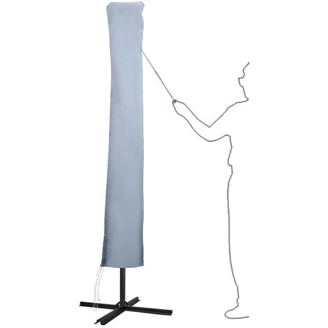 – Avec tige et fermeture éclair, pour une mise en place plus facile sur le parapluie debout