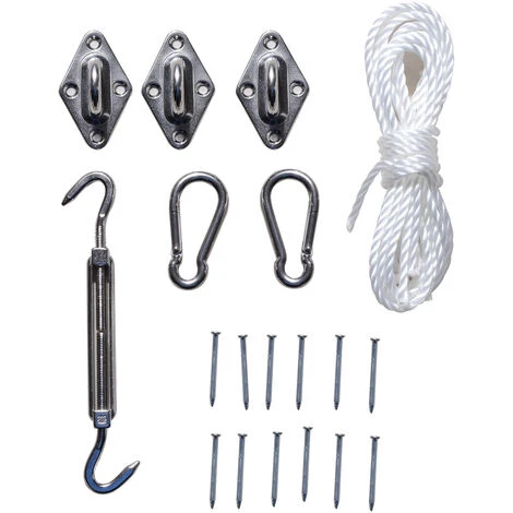 – Kit de montage en acier inoxydable spécialement adapté pour l’installation de votre voile d’ombrage