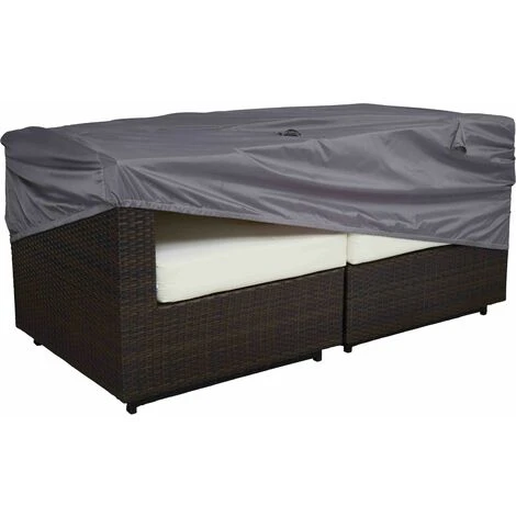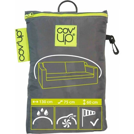 La housse de protection pour salon de jardin canapé 2 places dispose de 2 aérateurs anti-condensation. Elle dispose également d’un élastique pour être maintenue sur votre mobilier de jardin. La housse de protection de fauteuil de jardin est traitée anti-UV, imperméable et déperlante pour une longue conservation. Sac de rangement cousu à l’intérieur de la housse.