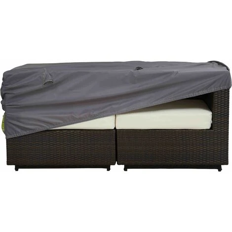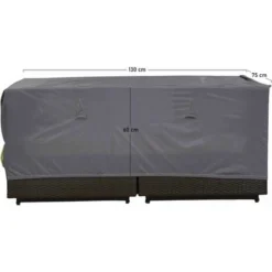 Housse de protection pour canapé de jardin 2 places 130 x 75 cm – Bâche pour salon de jardin en résine, toile polyester enduit PVC 70g/m² – Anti UV, imperméable et déperlant – 2 aérateurs – Elastique au bas de la bâhce pour assurer le maintien de la housse de protection sur votre salon de jardin