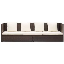 Le transat a un cadre en acier enduit de poudre qui est recouvert de rotin PE résistant aux intempéries et facile à nettoyer. Le coussin de siège et les oreillers très épais offrent un confort optimal. La housse de coussin de siège est équipée d’une fermeture à glissière pour un nettoyage facile. De plus, le lit de bronzage peut être ajusté en 7 positions différentes des deux côtés pour créer des sièges supplémentaires ou une position confortable pour vous détendre.