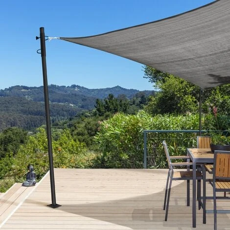 Vous souhaitez installer votre voile d’ombrage de façon bien particulière? Avec le lot de 2 mâts de fixation réglables, vous pourrez fixer votre voile d’ombrage très facilement, et le repositionner encore plus facilement en changeant la hauteur des fixations.Très pratique, ce lot de 2 mâts de fixation pour voile d’ombrage se fixe directement dans le sol. Equipés de bases stables et résistantes 12 x 12 CM, il vous suffit de les visser dans le sol, puis d’insérer les mâts dedans. Orientées avec un angle de 105°, ces bases permettent d’installer les poteaux en biais, ce qui permet de tendre au mieux votre voile d’ombrage.Des doubles fixations réglables en hauteur viennent compléter le lot de 2 poteaux pour adapter votre ombrage selon votre envie. D’une hauteur maximale de 220 CM, vous pouvez facilement installer sous le voile d’ombrage un salon de jardin par exemple, sans craindre d’être dérangé par la toile.La structure des mâts s’emboite et se déboite très facilement, pour ranger les poteaux très facilement pendant les périodes où l’exposition au soleil est moindre.Dimensions du lot de 2 mâts de fixation réglables- Dimensions d’un poteau : Diamètre 3 CM x Hauteur 220 CM- Dimensions de la partie réglable en hauteur : Longueur 23 x Diamètre 3,5 CM- Dimensions d’un pied : Longueur 12 x largeur 12 x Hauteur 8 CM- 4 trous de fixation prévus dans la base du pied- Dimensions des accroches sur chaque poteau : 4 x 3 CM- Angle d’inclinaison : 105°- Matériaux : Acier peint en noir- Compatibles avec les voiles d’ombrage et ombrières disponibles sur notre boutique en ligne !