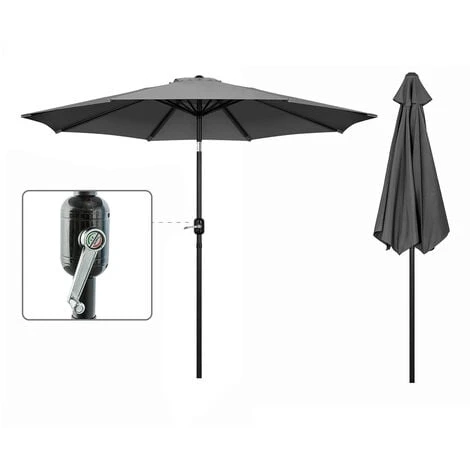 4. Support Solide: Le cadre du parapluie en acier enduit de poudre ne rouille pas ni ne se décolora, qui montre une bonne stabilité en résistant au vent. Le tube vertical de parasol fait 38mm de diamètre. Il est composé de deux parties vissées ensemble. Assurez-vous d’augmenter le poids avant utilisation pour améliorer la stabilité.