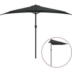 Cet élégant parasol de balcon est parfait pour créer de l’ombre et vous protéger des rayons UV nocifs. Fabriquée en polyester anti-UV et anti-décoloration, la couverture de parasol vous offre une protection optimale contre le soleil et est facile à nettoyer. Avec un diamètre de mât de 38 mm, il pourrait être monté sur le support ou au milieu de tables avec trou. Sa forme demi-ronde ajoute également au charme unique du parasol. Le mât en aluminium résistant, ainsi que les 5 nervures en acier robustes, rendent le parasol très stable et durable. Le parasol de jardin peut être facilement ouvert et fermé grâce au mécanisme à manivelle. Veuillez noter que le socle de parasol n’est pas inclus dans la livraison. Nous vous recommandons de traiter le tissu du parasol avec un spray imperméabilisant s’il est soumis à des fortes précipitations.