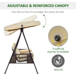– Grand coussin d’assise et de dossier confortable grâce à son rembourrage souple de 8 cm d’épaisseur (2 oreillers fournis) avec cordons d’attache à l’armature