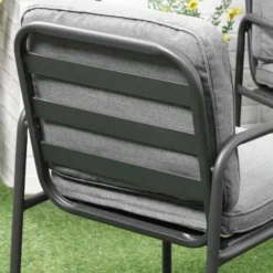 – Structure robuste en métal époxy anticorrosion coloris noir, coussins coloris gris : jolie mixité de couleurs modernes