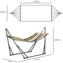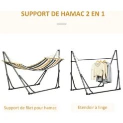 – Hamac en coton, lin haute densité 320 g/m², d’une grande douceur et solidité