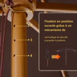 – Système d’ouverture et fermeture à corde avec verrouillage de sécurité 4 niveaux