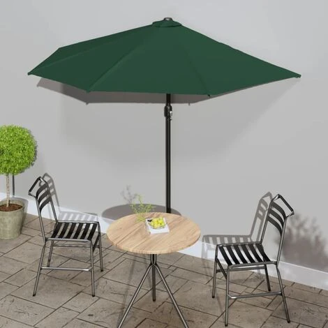 Cet élégant parasol de balcon est parfait pour créer de l’ombre et vous protéger des rayons UV nocifs. Fabriquée en polyester anti-UV et anti-décoloration, la couverture de parasol vous offre une protection optimale contre le soleil et est facile à nettoyer. Avec un diamètre de mât de 38 mm, il pourrait être monté sur le support ou au milieu de tables avec trou. Sa forme demi-ronde ajoute également au charme unique du parasol. Le mât en aluminium résistant, ainsi que les 5 nervures en acier robustes, rendent le parasol très stable et durable. Le parasol de jardin peut être facilement ouvert et fermé grâce au mécanisme à manivelle. L’article est facile à assembler. Veuillez noter que le support de parasol n’est pas inclus dans la livraison. Nous recommandons de traiter le tissu du parasol avec un spray imperméabilisant s’il est soumis à des fortes précipitations.