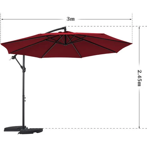 [Abri confortable] – La hauteur du parasol est de 2,45 m. Le diamètre de la housse de parapluie est de 3 m. Un parasol suspendu de 10 pouces ajoutera un espace d’ombre parfait à n’importe quelle terrasse ou cour. Il peut vous fournir un abri par temps de bruine et une protection solaire les jours ensoleillés.