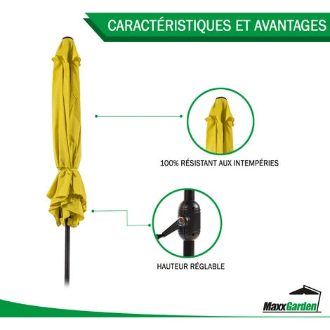 - Contenu de l’emballage : 1 x Parasol, 1 x Notice